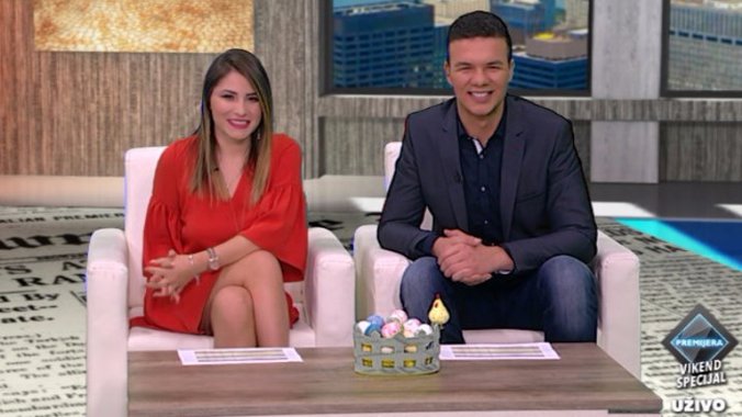 Na samom početku prazničnog izdanja emisije "Premijera - Vikend specijal", voditelji Tijana Prica i Ognjen Nestorović čestitali su milionskom auditorijumu Pink televizije najveći hrišćanski praznik, a onda su odmerili snage u tucanju jajima, u čemu je pobedu odneo Ognjen.