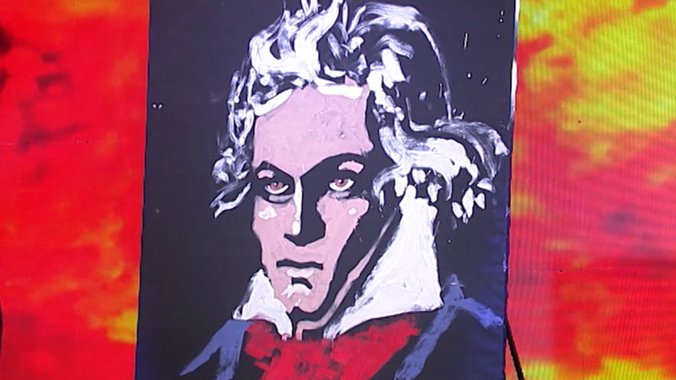 Na kraju se ispostavilo da je sve vreme slikao Betovenov protret, čija pesma je i išla u pozadini dok je on nanosio boju na platno.