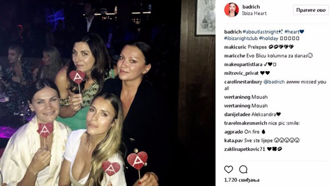 Nina je na Instagramu podelila nekoliko fotografija sa odmora, a čini se da je sve u znaku ljubavi, te su dame u noćnom izlasku imale i poslastice sa slovom "A".