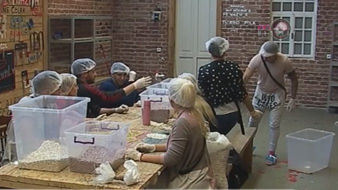 Zadrugari su ove nedelje radili u dve smene u fabrici, gde su imali zadatak da razvrstavaju pasulj, po bolji i veličini. Dnevna norma je bila 300 kilograma, što oni nisu uspeli da stignu. Međutim, poslednjeg radnog dana uspeli su da to promene, ali nisu se svi obradovali zbog toga.