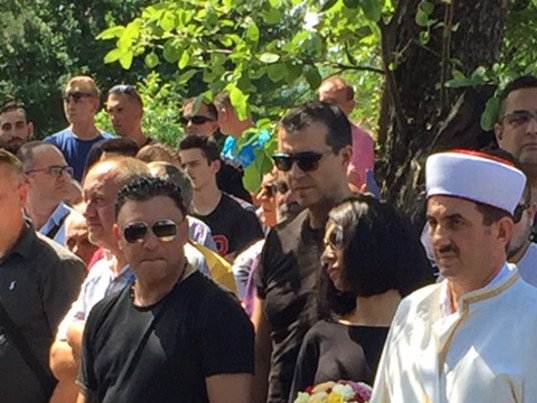 Sinanova supruga Sabina i njihova deca sa suzama u očima bili su u prvom redu na sahrani, a iako nije običaj da žene idu na groblje, porodica je odlučila da se to pravilo prekrši kako bi mogli dostojanstveno da isprate pevača na večni počinak.