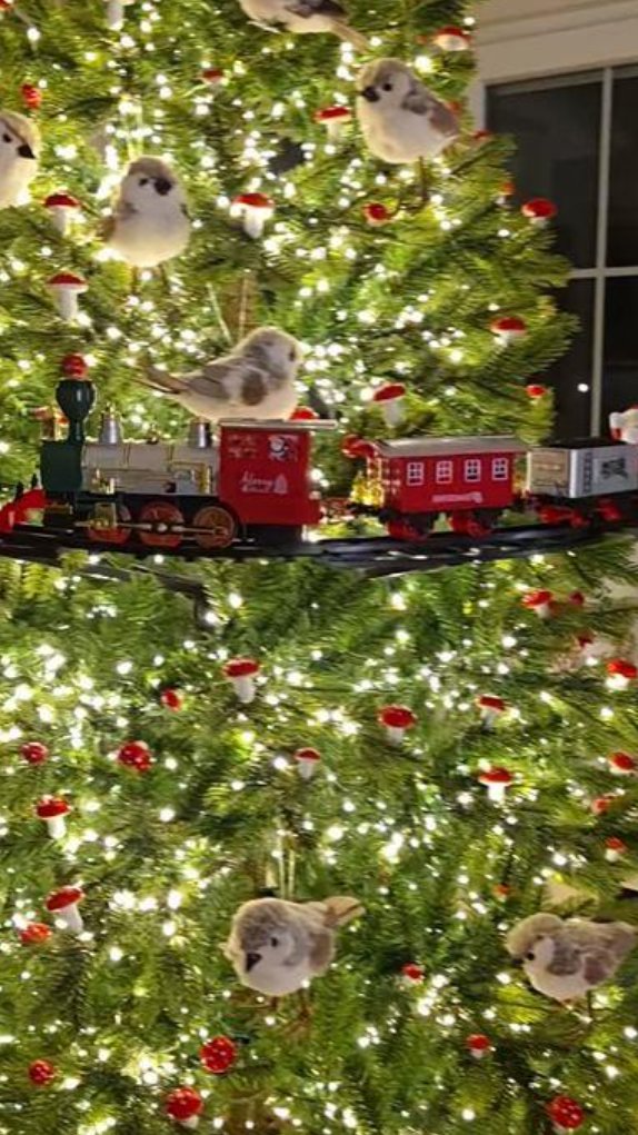 U centru dnevne sobe nalazi se visoka jelka puna svetiljki i lampica, a ono što je poseban detalj, do sada nikad viđen jeste voz koji se kreće oko novogodišnjeg drveta.
