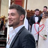 Trudna mlada za ovu svečanu priliku venčanja u crkvi Sv. Marka izabrala je beli kaput, dok je mladoženja nosio crno odelo.