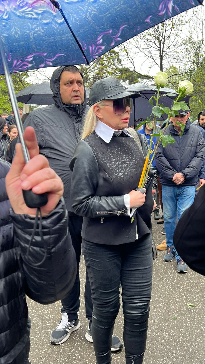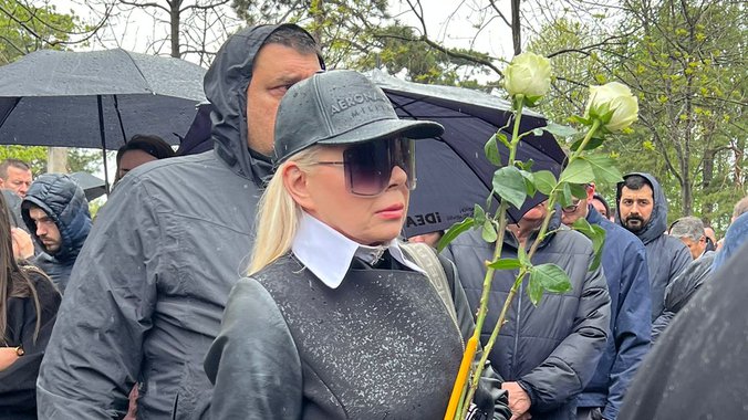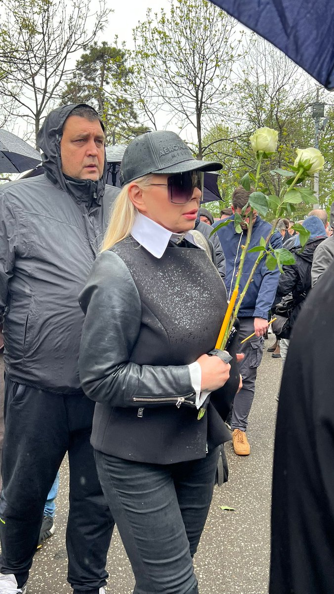 Ona se na sahrani pojavila sa kačketom i velikim naočarama koje su pokrivale njeno lice, a donela i je dve bele ruže za Vujoševića.