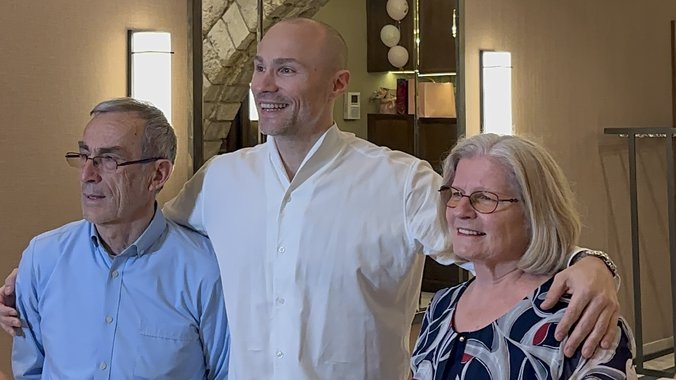 Novopečeni tata je s osmehom na licu dočekivao zvanice, a među prvima su se na proslavi pojavili njegovi roditelji Milena i Radovan, ponosni baka i deka, sa kojima je pozirao okupljenim fotoreporterima.