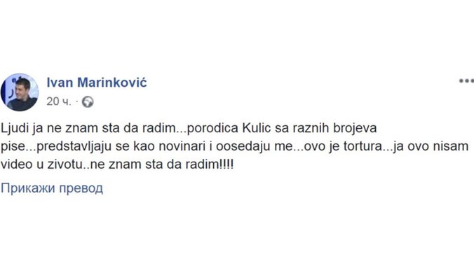 Naime, Ivan Marinković je na svom nalogu na društvenoj mreži Fejsbuk objavio status u kom je napisao kako ga porodica Kulić non-stop poziva sa raznih brojeva telefona i da se članovi Miljanine familije predstavljaju kao novinari. Ispod ovog statusa odmah su počeli da pljušte komentari, a neki su zapali za oko i samoj Miljani.