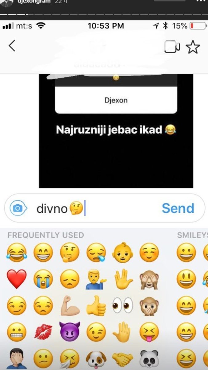 Najružniji j*bač ikad! - glasila je poruka na koju je reagovao zamišljenim smajlijem uz reč ''divno''.