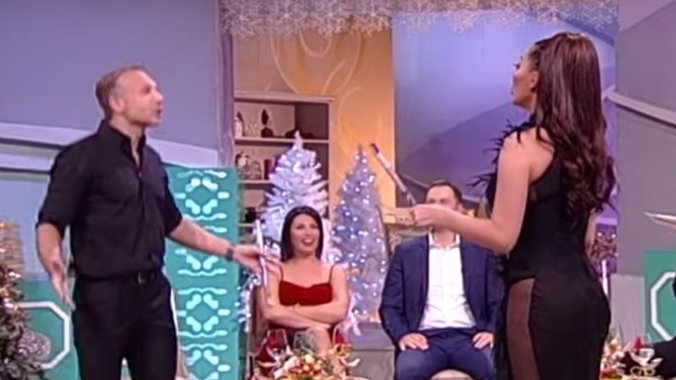 Prvo su se raspravljali dok su sedeli u emisiji, a kasnije su uzeli ukrasan papir i činilo se kao da će se potući.