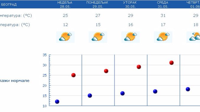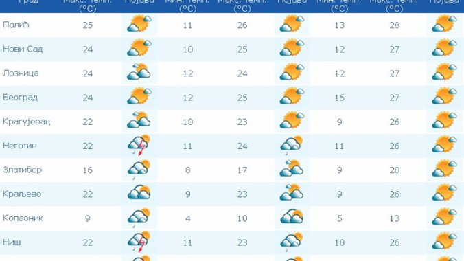 Jutarnja temperatura biće od osam do 13 stepeni, a najviša dnevna od 22 do 26 stepeni.
