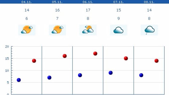 Najniža temperatura od dva do osam, najviša dnevna od 12 do 16.