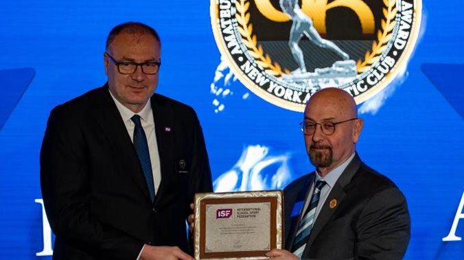 Naša delegacije prisustvovala je i prestižnoj ceremoniji dodele tradicionalnih AAU Salivan nagrada. Na samom početku skupa, Željko Tanasković je uručio zahvalnicu ISF predsedniku Američke amaterske unije Džou Mirzi, za izuzetan doprinos razvoju školskog sporta u Americi, što je pozdravljeno velikim aplauzom. Za najbolju sportistkinju na ovoj velelepnoj svečanosti u Njujork Atletik klubu proglašena je Tatjana Mekfaden. Skupu je prisustvovala i izvršna direktorka ISF, Hasna Ajobi.