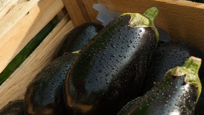 400 grama plavog patlidžana, 40 grama crnog luka, 1 paradajz, 1 struk celera, 1 kašičica kapara, crne masline, ulje, sirće, šećer, so, biber