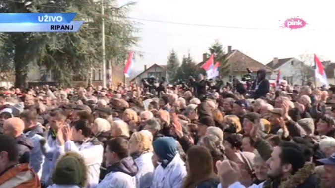 Srpska napredna stranka održala je danas predizborni miting u beogradskom naselju Ripanj ispred porte crkve svete Trojice pred nekoliko hiljada ljudi.