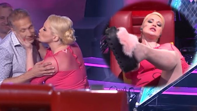 U jednom trenutku pevačica je pokušala da voditelja poljubi u usta, a Milan Kalinić je jedva uspeo da se odbrani.