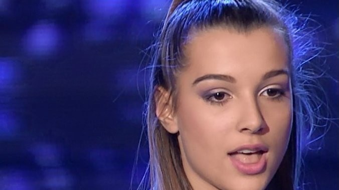 Mina ima 13 godina i iz Skoplja je, a svojom interpretacijom je osvojila simpatije svih članova žirija i prošla direktno u treći krug.