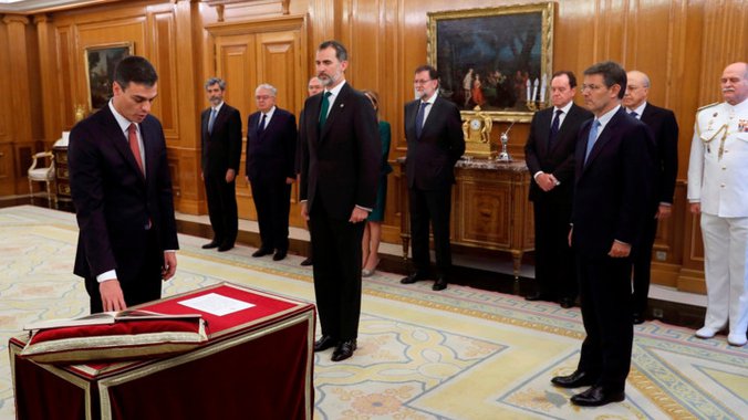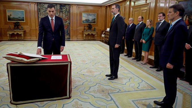 Lider španskih socijalista Pedro Sančes položio je zakletvu stupajući na dužnost premijera držeći desnu ruku na ustavu, a ne na Bibliji.