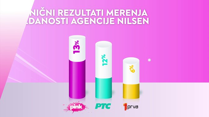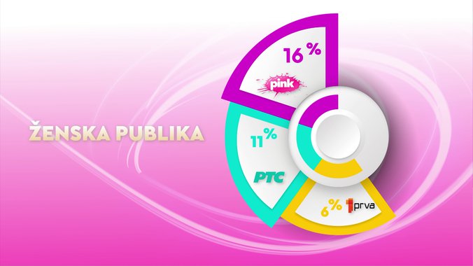 Televizija Pink je od svih komercijalnih emitera, ali i Javnog servisa Srbije bila gledanija u totalu, među ženskom publikom, među gledaocima sa teritorije Beograda i među gledaocima iz prestonice starosti od 18 do 49 godina, dok je od svih komercijalnih televizija bila gledanija među gledaocima starosti od 18 do 49 godina, među ženskom publikom starosti od 18 do 49 godina, kao i među urbanom populacijom.