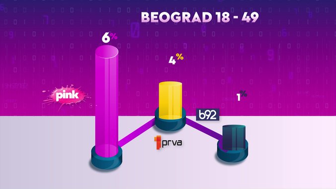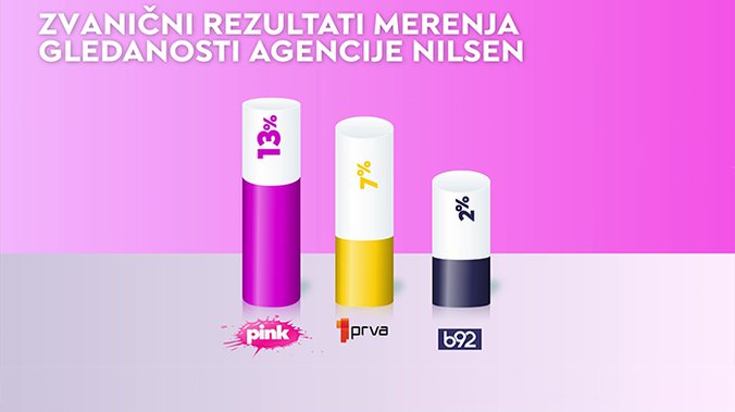 Televizija Pink je od svih komercijalnih emitera bila gledanija u totalu, među gledaocima starosti od 18 do 49 godina, među ženskom publikom starosti od 18 do 49 godina, među gledaocima sa teritorije Beograda, među gledaocima iz prestonice starosti od 18 do 49 godina i među urbanom populacijom, dok je i od Javnog servisa Srbije bila gledanija među ženskom publikom.